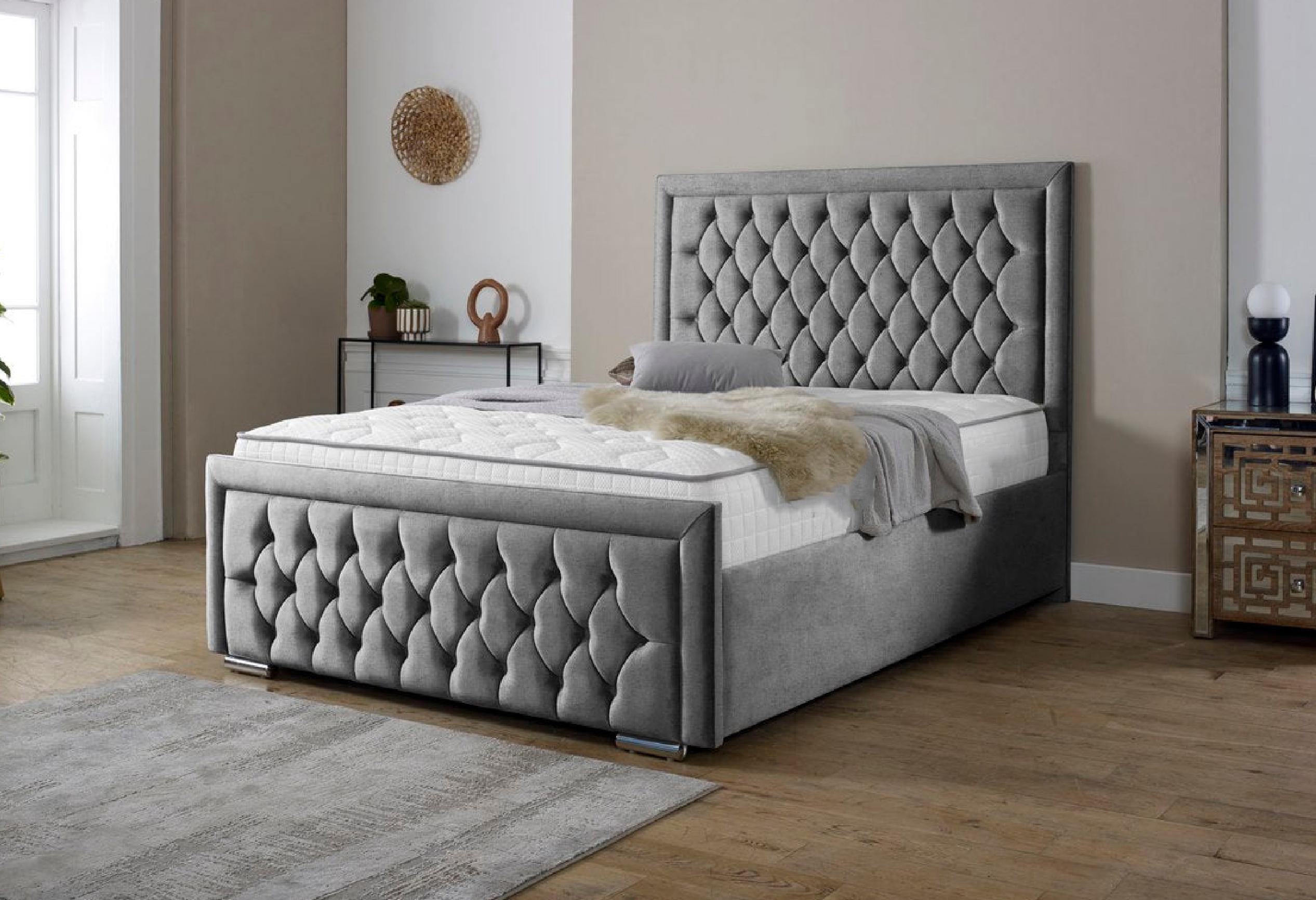 Cidra Wingback Divan Bed, the Valeria wingback bed frame combines the opulent hand-tufted Chesterfield aesthetics of the Victorian era with a streamlined modern design. Thanks to its tall, “winged” headboard, this bed is a true design statement. Our in-house design team chose the best textiles for this collection.
