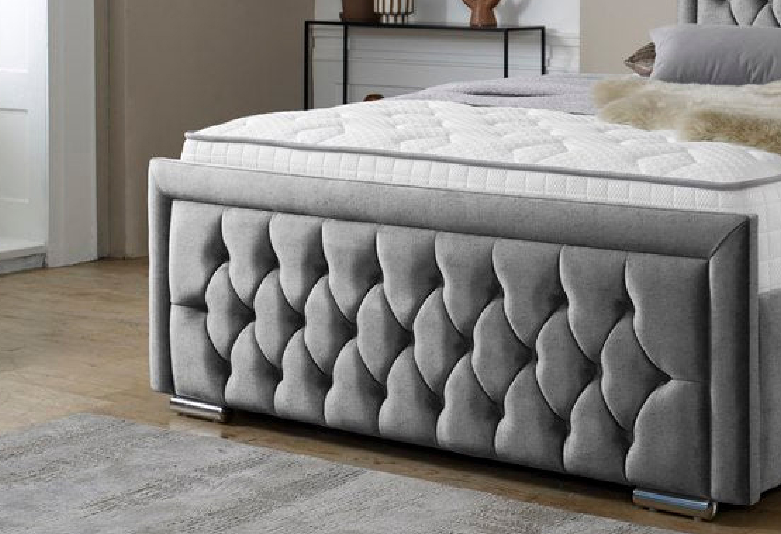 Silver Plush Velvet makes up the bed in the picture (fabric samples can be ordered as the photographs may not accurately reflect the color provided; you can use filters or click the link at the top of the page to view fabric samples).