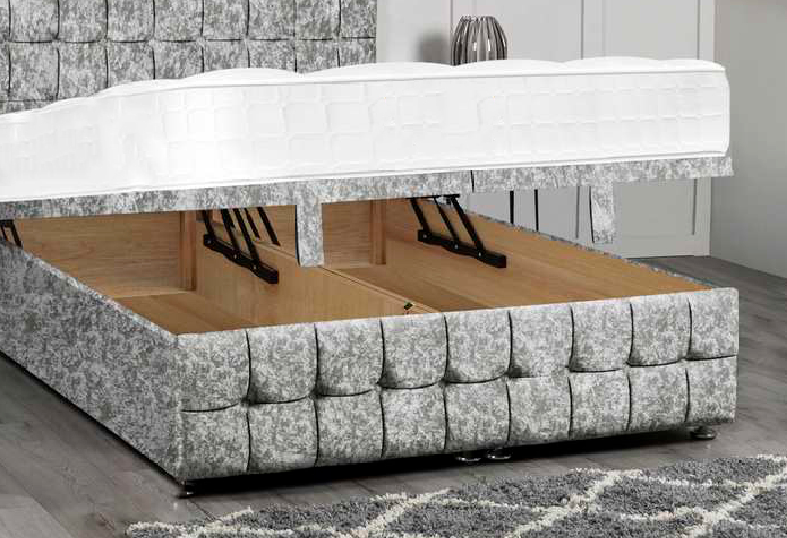 Our Kingston ottoman offers useful extra storage in addition to support. Our frame, made of FSC-certified wood, and the in-bed storage, which opens from the foot of the bed, provide six times as much storage as a two-drawer divan base. It gives your mattress a firmer foundation than our Chartwell divan, which is softer and has pocket springs.